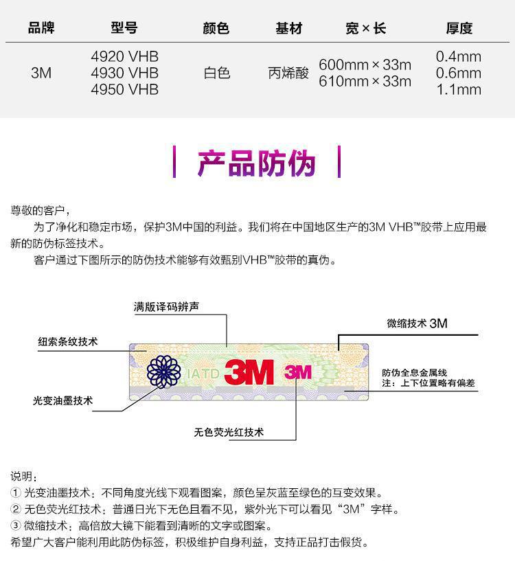 品牌:3M 型號:4950 寬度:600MM(支持定制)